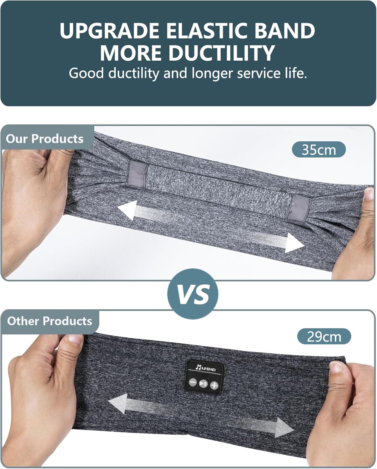 【Comfortable & Breathable Material Headband】Bluetooth headphones headband is made of 95% polyester fiber and 5% spandex, it is very elastic and fits most head shapes. The Bluetooth headband absorbs sweat, breathes and dries quickly to keep sweat and hair out of your eyes while exercising, perfect for jogging or working out. (Please remove the Bluetooth module before washing it.)