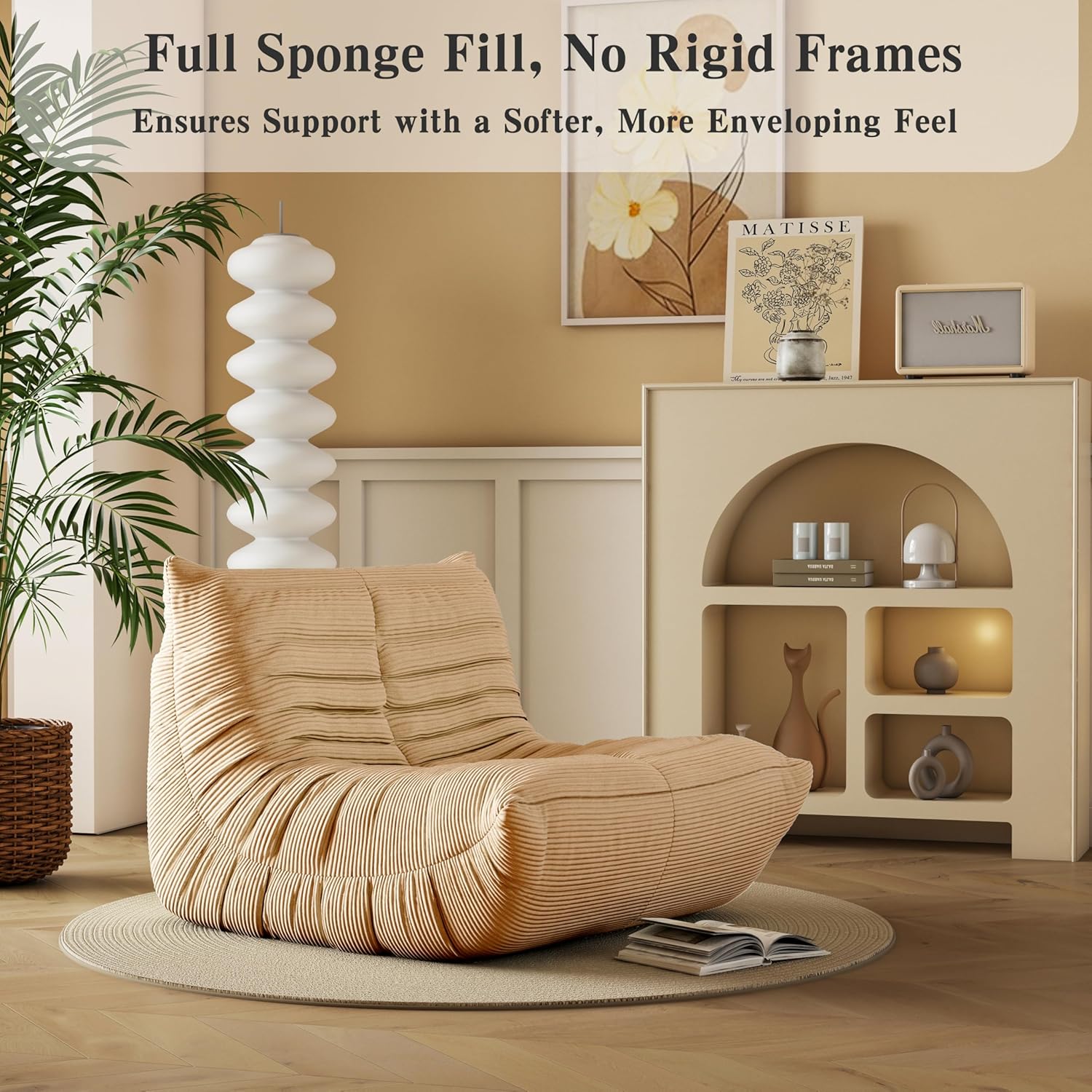 Soft & Stylish Corduroy Fabric: Crafted with soft, high-quality corduroy, this chair feels as good as it looks. The breathable, skin-friendly fabric makes it a comfy spot for year-round lounging—cozy in the winter and cool in the summer. Its modern yet casual vibe fits effortlessly into any space.