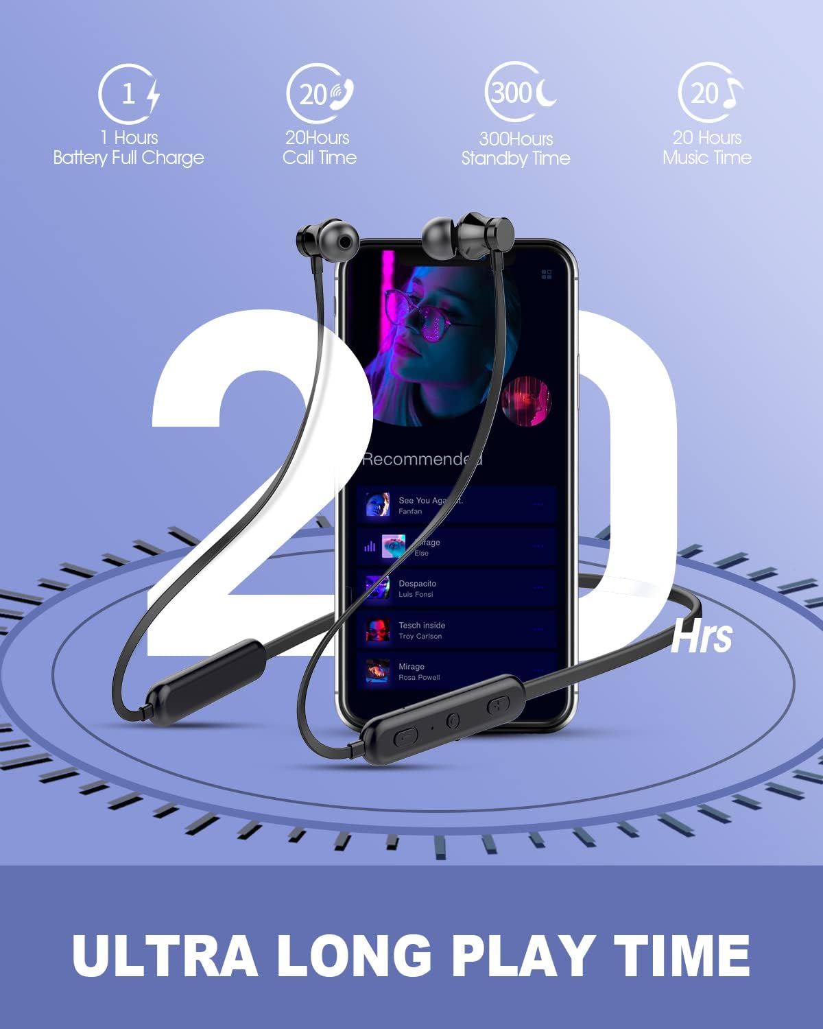 ♫20-Hr Excellent Long Battery Life: This Bluetooth headphones has a long lifetime, up to 16 hours continuous talking time, 20 hours music time, 240 standby time and only need takes around 1.5 hours for full charged.