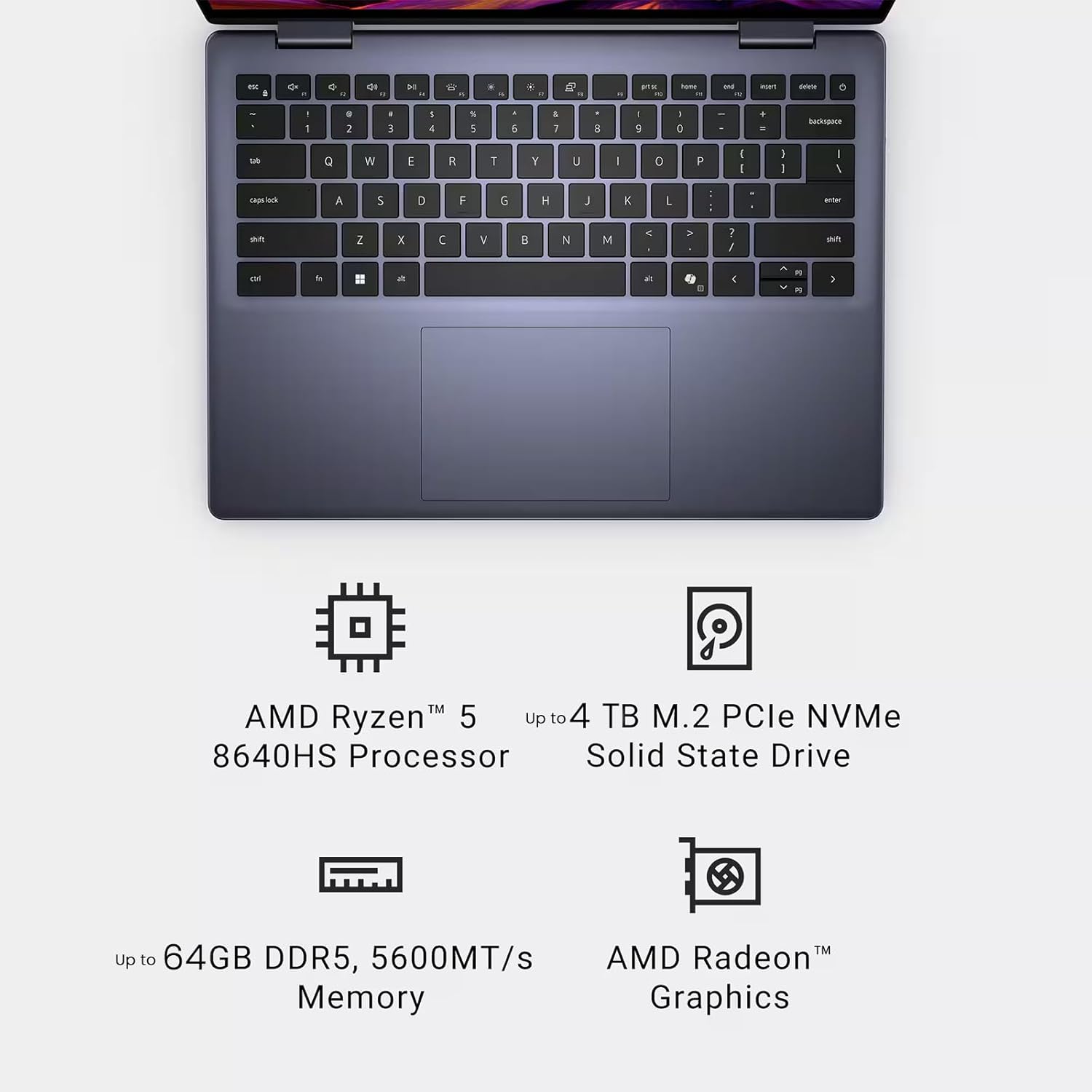 AMD Ryzen 5 8640HS Performance: Powered by a 6-core, 12-thread AMD Ryzen 5 8640HS processor (up to 4.9GHz) and integrated Radeon Graphics, this 2-in-1 laptop delivers fast, efficient performance for multitasking, business workloads, and light content creation. Built on advanced Zen 4 architecture for enhanced battery life and speed.