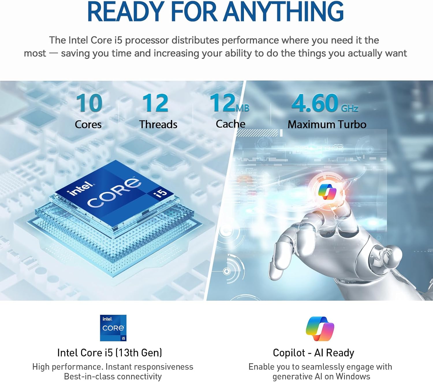 Intel Core i5 (10 cores, 12 threads, up to 4.6GHz) – excel at fast multitasking and heavy workloads