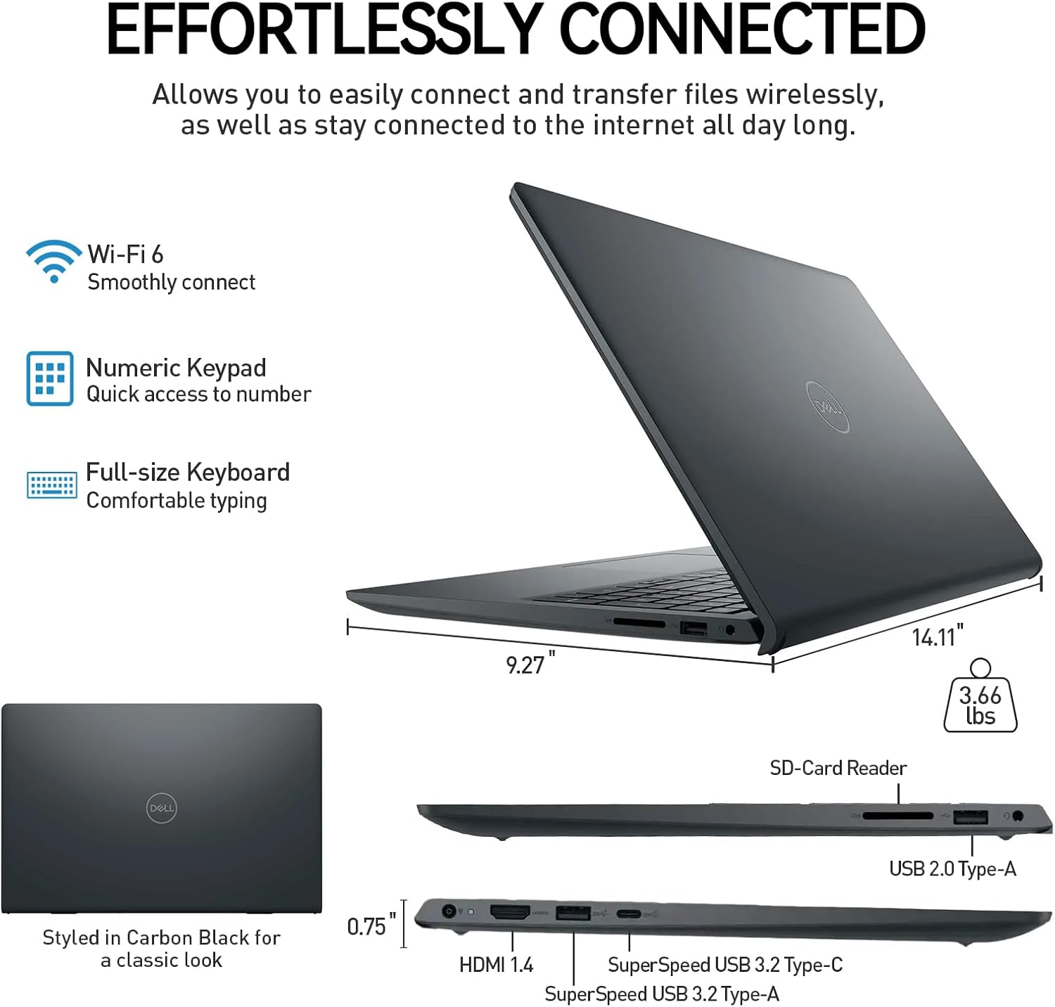 SECURE AND EFFICIENT WORKFLOW: Designed for business and students, the laptop Windows 11 combines AI-enhanced performance to complete tasks up to 42% faster. Its durable battery supports uninterrupted work on the Windows 11 Pro laptop. With Lifetime Microsoft Office, the laptop Dell Core i5 includes multitasking tools that help you get work done faster and easier: 1x USB-C 3.2, 1x SuperSpeed USB-A, 1x USB 2.0, SD Card Reader, HDMI1.4, Wi-Fi 6+Bluetooth and a premium docking station