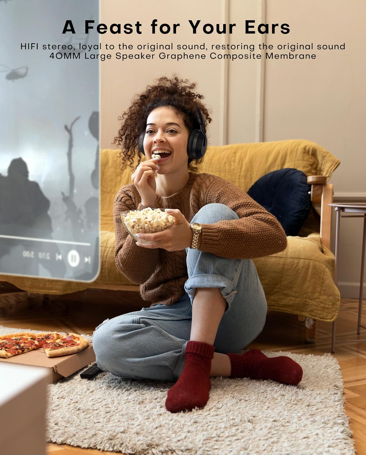 Ultra-Low Latency Audio: These wireless TV headphones use Bluetooth 5.3 technology and advanced acoustic algorithms to achieve industry-leading ultra-low latency of under 40ms. This ensures near-zero delay between audio and video, providing a smooth, real-time audio experience. Whether watching sports, movies, or listening to music, every thrilling moment—from a game-winning goal to an intense chase scene in a movie—is perfectly synchronized for a professional-grade audio-visual experience