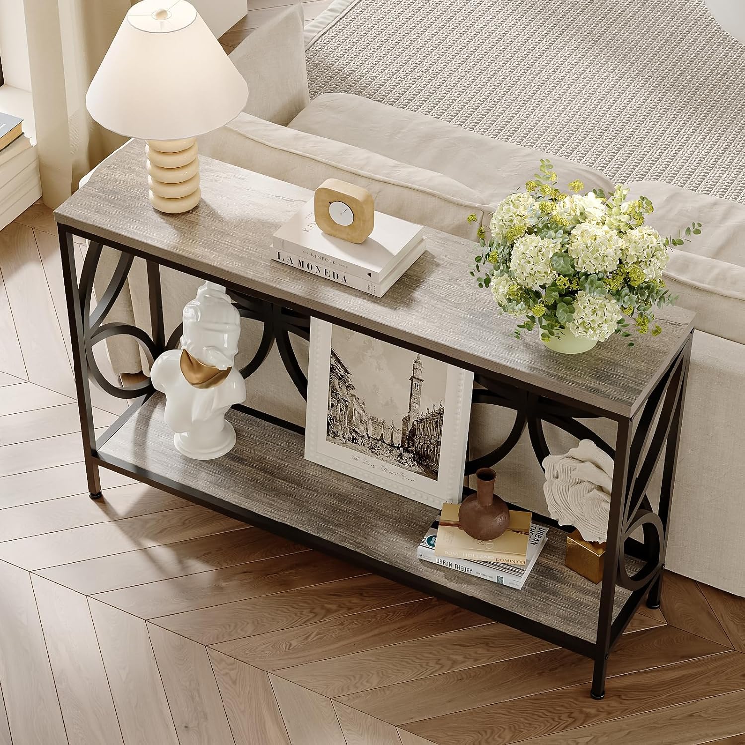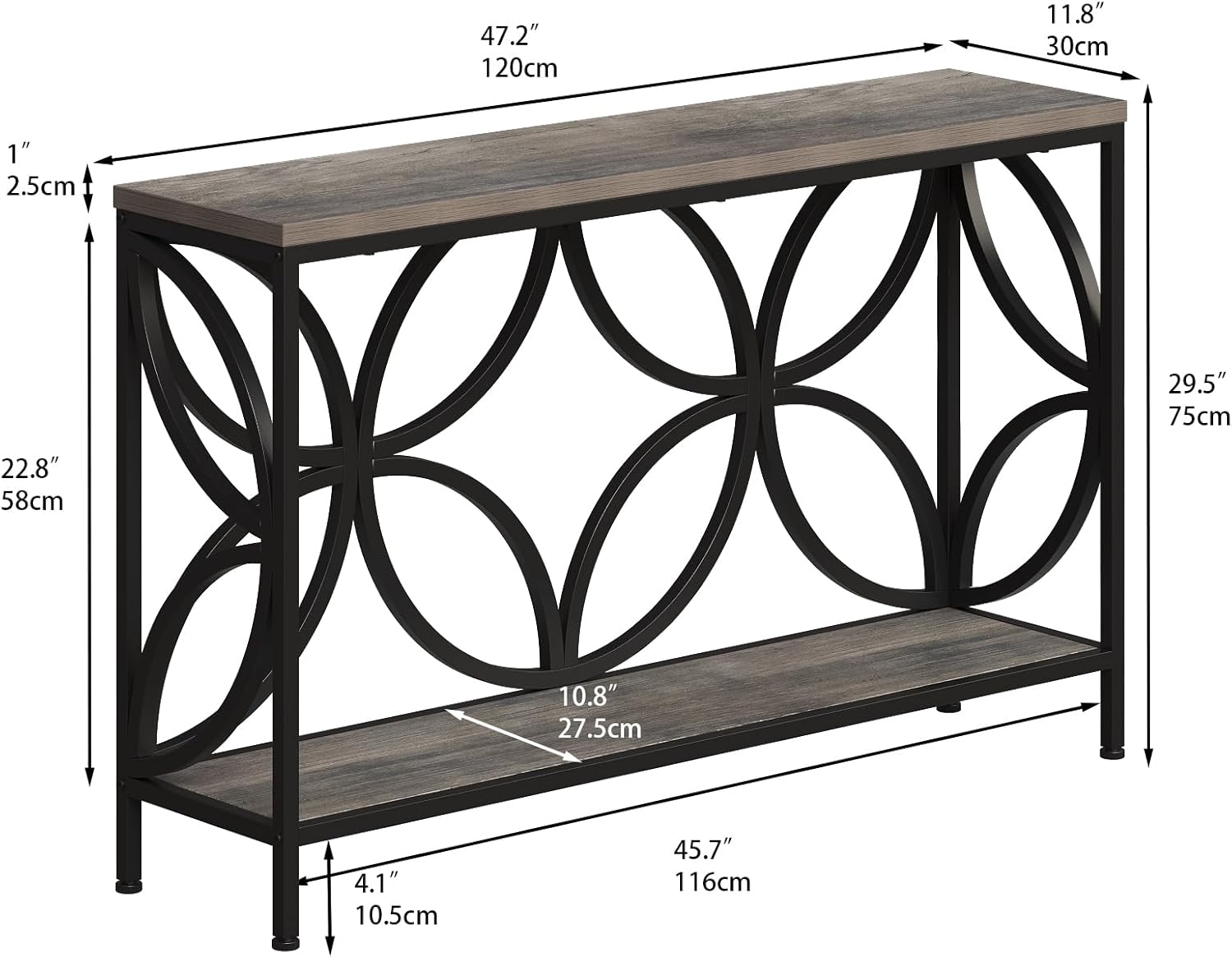 Sturdy and Durable: Crafted from high-grade particle board and quality iron frame, this long console table can hold up to 150 lbs each shelf. Plus, with 4 adjustable feet, it can stand stably on any surface.