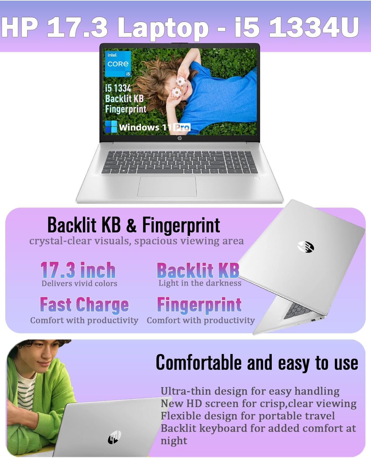 Fast Responsiveness – Experience quick boot-ups and instant file access with 20GB DDR4 RAM and a 512GB SSD. This HP 17 inch laptop handles everyday multitasking with ease, keeping your applications and files ready when you are—perfect for busy professionals.