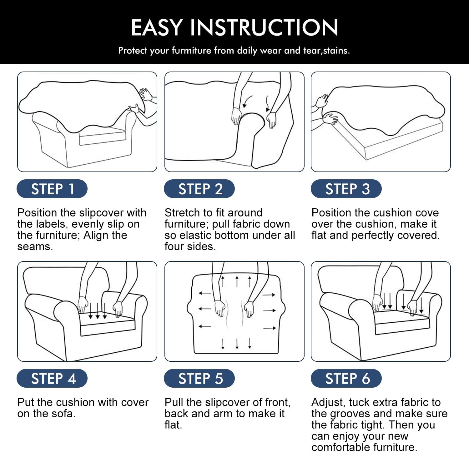 [Non-Slip Design] The slipcovers for sofas include elastic straps on the bottom edges and a very stretchy characteristic that makes them suitable for most furniture styles. Simply run the straps through the bottom of the sofa and hook the loop on the front side.
