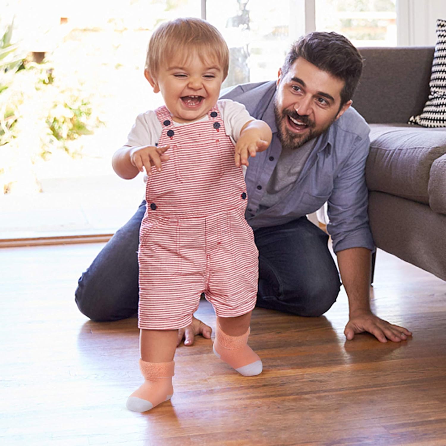 Wearing JAKIDAR’s socks with non-slip dots make it easier for your baby to learn to crawl, walk or sprint! JAKIDAR socks are perfect for families with slippery floors.
