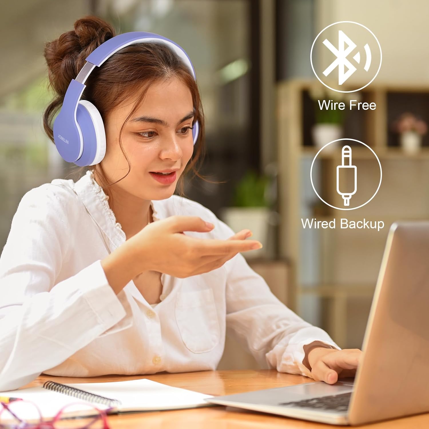 UP TO 60 HOURS PLAYTIME – JOMILIN wireless headphones deliver up to 60 hours playtime on a single charge. A quick 10-minute charge gives you up to 4 hours of playtime. This wireless headset can also easily connect to other non-Bluetooth devices via a 3.5 mm audio cable, plug in the included audio cable to listen for even longer in wired mode.