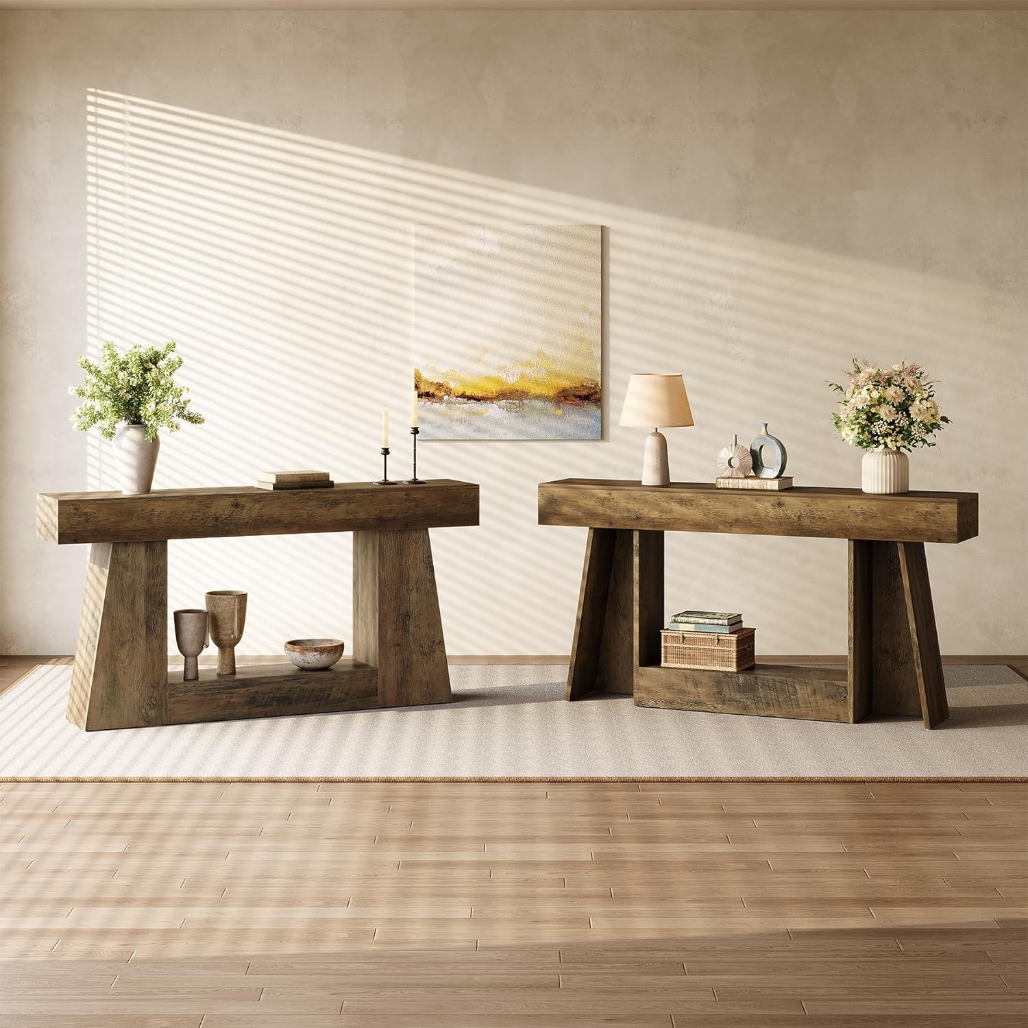 Premium MDF Construction: Engineered with MDF and reinforced trapezoidal base, the console table for entryway withstands daily use while preserving its distressed wood aesthetic. Hidden fasteners ensure both durability and upscale presentation