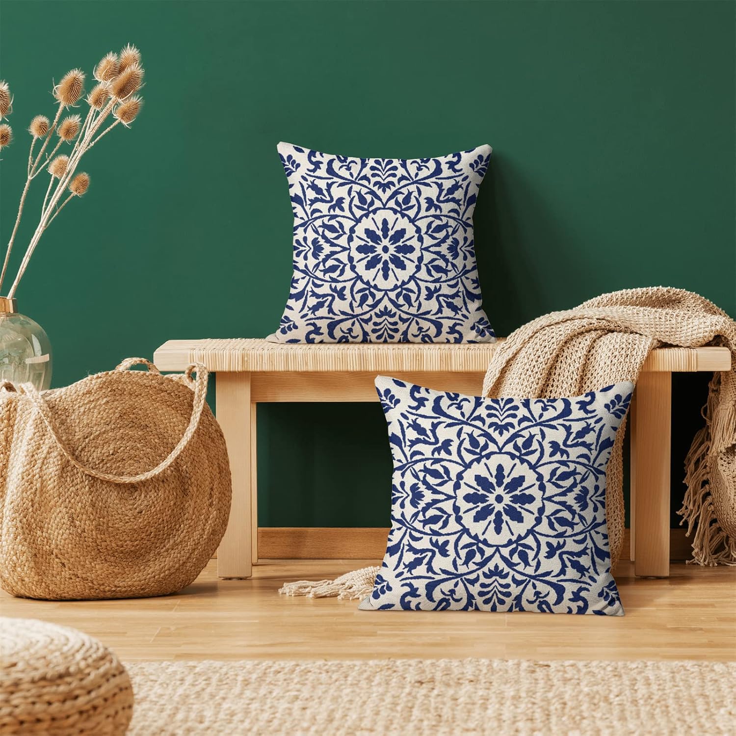 ★SIZE & PACKAGE: Blue boho pillow covers 20×20 inch set of 2.(no insert or filler)