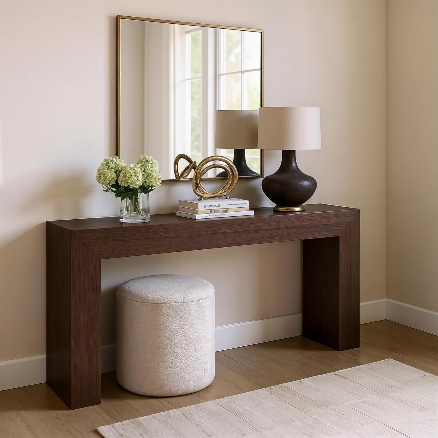Perfectly Balanced Design: With thicker legs, this narrow entryway table creates a striking focal point in any room. The hollow leg design maintains the table’s grand presence without the burden of excessive weight. This innovative feature makes the wooden console table easier to handle and move