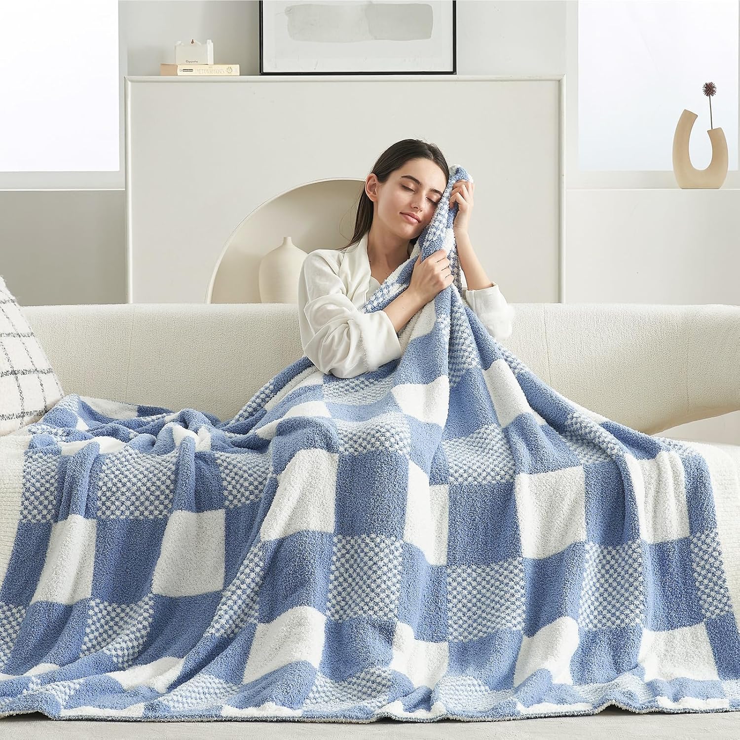 Giftable and Decorative: Our soft checkered throw blankets come wrapped with a bow ribbon, making them an excellent choice for gift-giving on occasions like birthdays, Christmas, Halloween, Valentine’s Day, Thanksgiving, and New Year to friends, colleagues, and family. The blanket’s fluffy fibers add a cozy feel, making it an ideal way to add elegance and comfort to your couch, sofas, beds, armchairs, or living room.