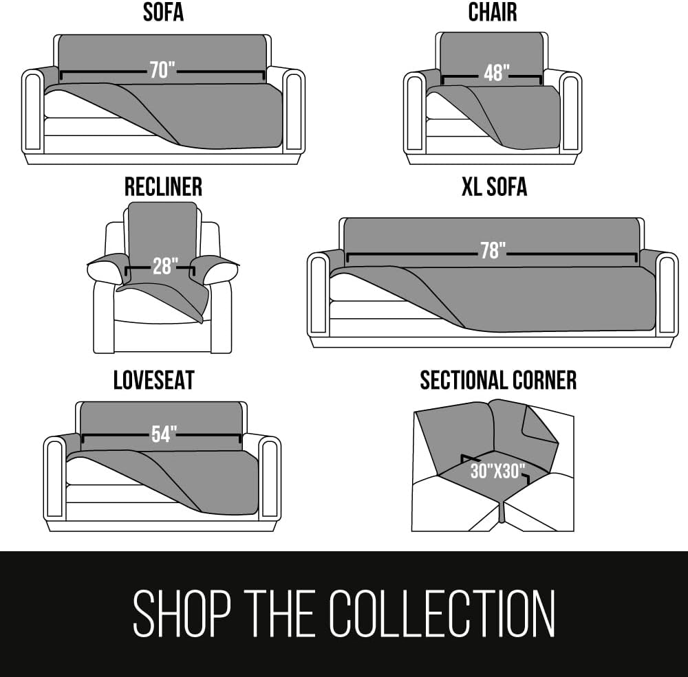 Generous Sizing for A Perfect Fit: thoughtfully designed for generous coverage across furniture widths, arms and backs; our collection of furniture protectors are available in many sizes, colors and patterns for a fitted look and coordinated set across reclining chairs, loveseats, 2 seaters, couches, sofas, recliners, l shape sectionals, and chaise lounges