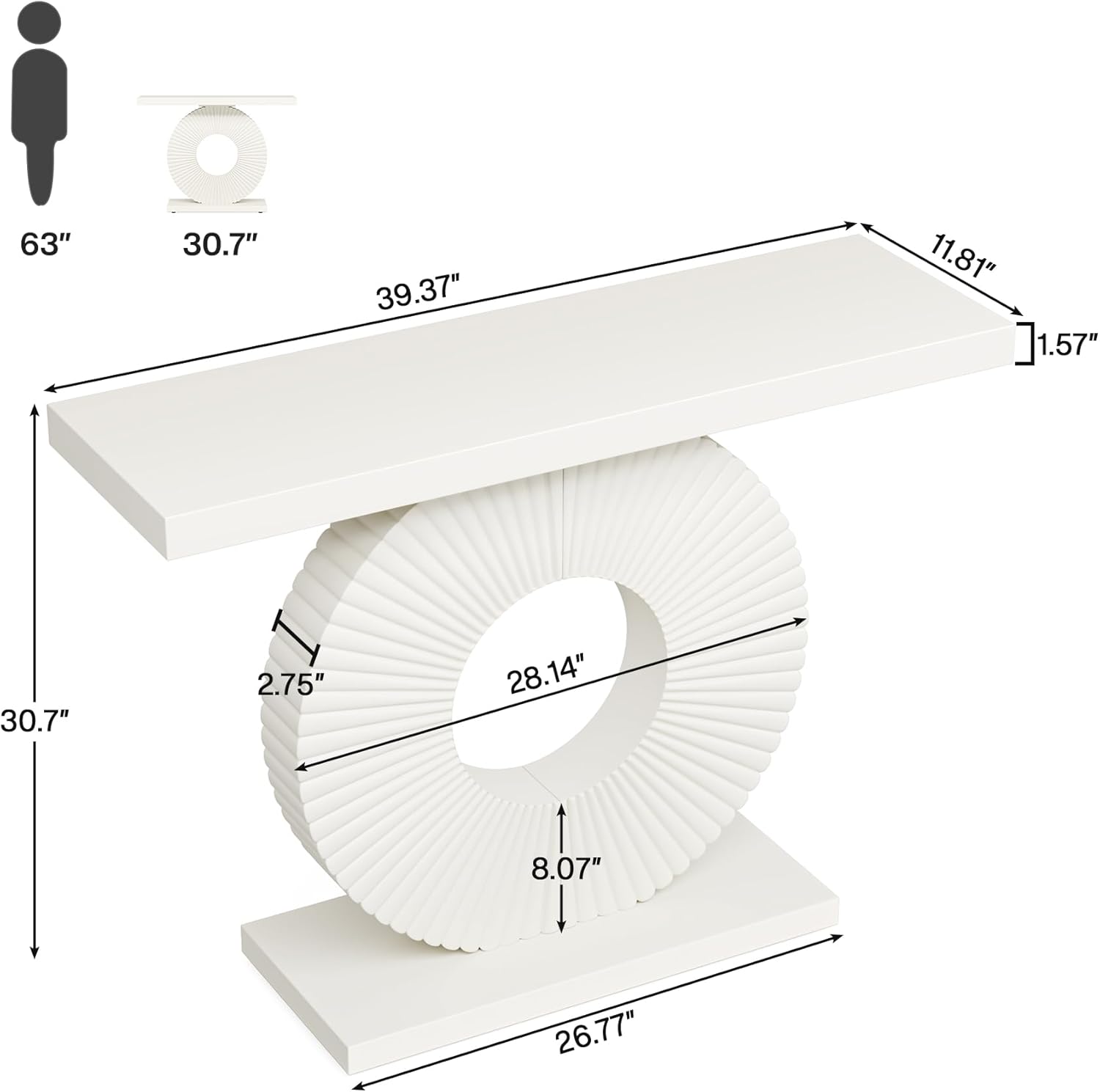 ✔【COMBINATION OF FUNCTION & STYLE】This contemporary console table showcases an circular flower shape base with curved lines accents that pair seamlessly with clean tabletop for a minimalist glam look. With a striking geometric design for a touch of impeccable style, this table will be sure to enliven any space. From an entryway to living room and beyond, the entryway table offers room to display decor pieces while also clearing up clutter.