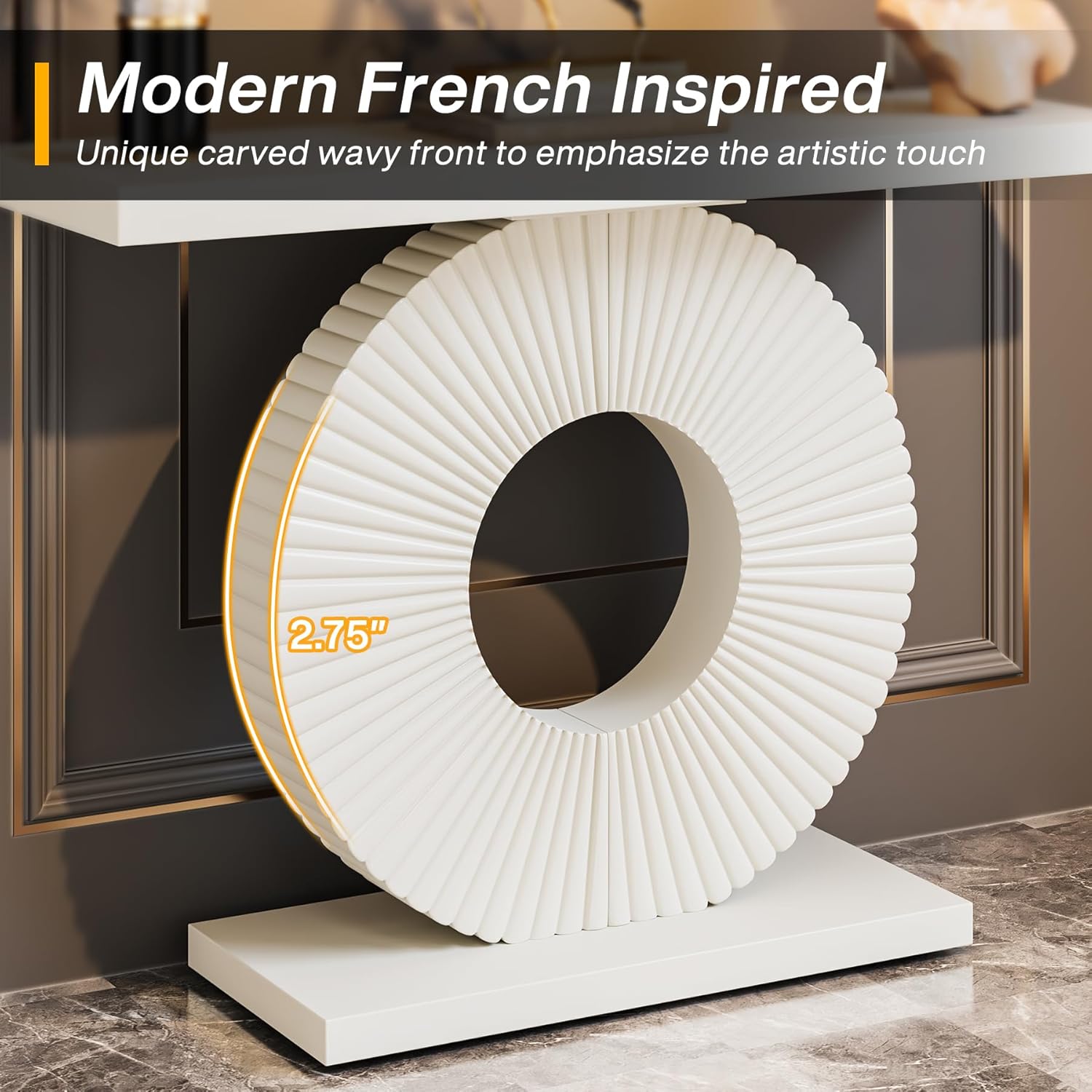✔【ELEGANT GEOMETRIC BASE】 With an wave silhouette, the pedestal base is a work of art with its curves lines and minimalist vibe. Integrated outfit welding, rust-proof, stable support without shaking. The modern entryway table is designed with rubber stoppers at the bottom that prevents sliding around as well as scratching the floor.